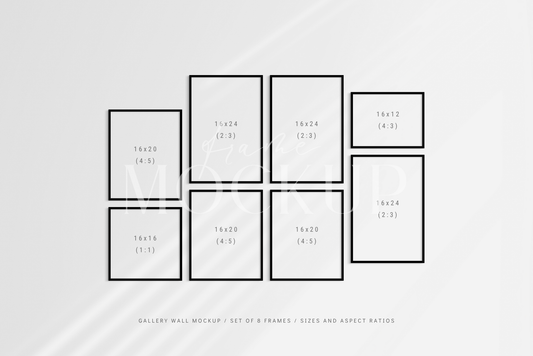 Gallery Wall Mockup | Frame Mockup Set of 8 Frames | 04-08