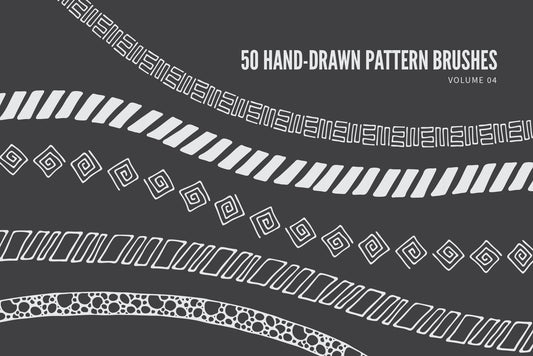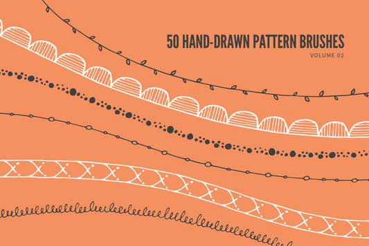 50 Hand-Drawn Vector Pattern Brushes 01 Geometric, Tribal, Boho, Floral