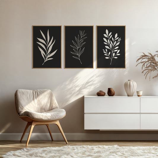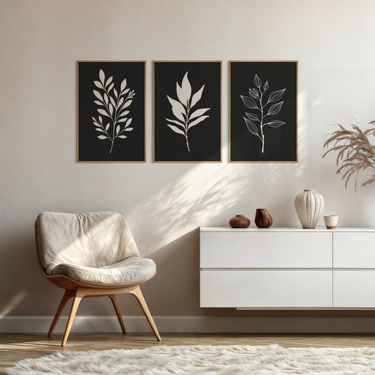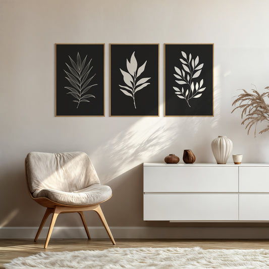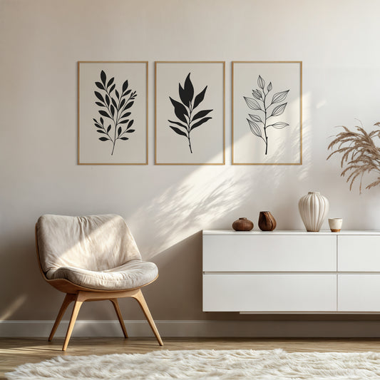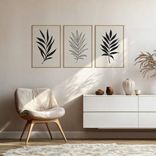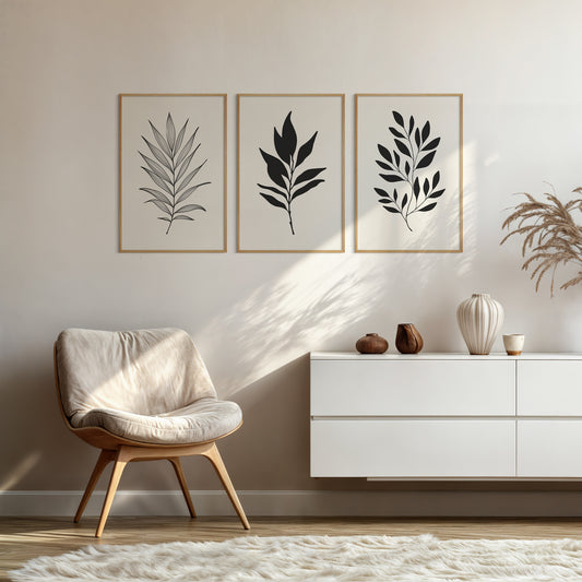 Botanical Wall Art Illustration. Neutral Leaf Art Set of 3 Prints.