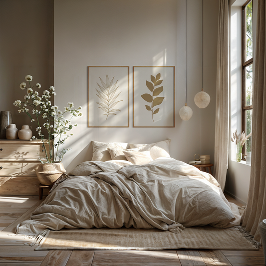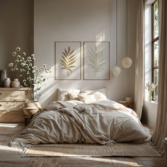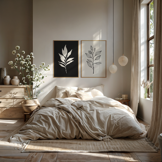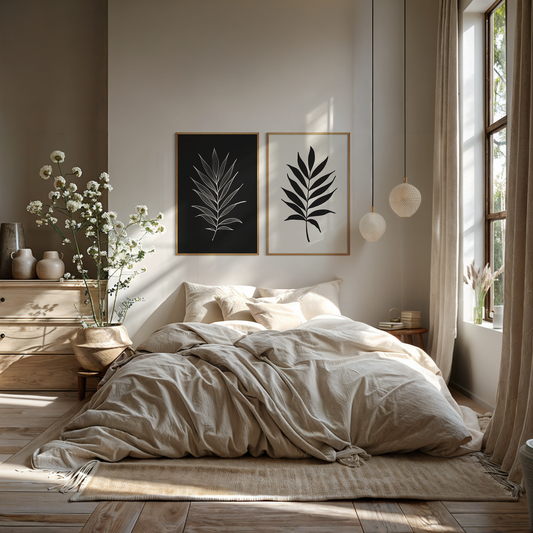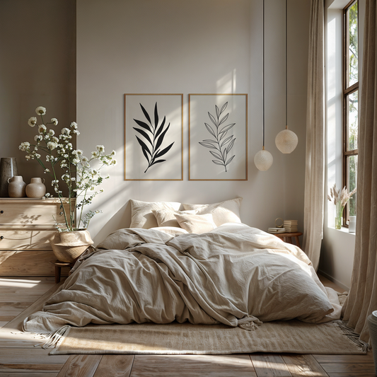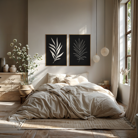 Botanical Wall Art Illustration. Neutral Leaf Art Set of 2 Prints.