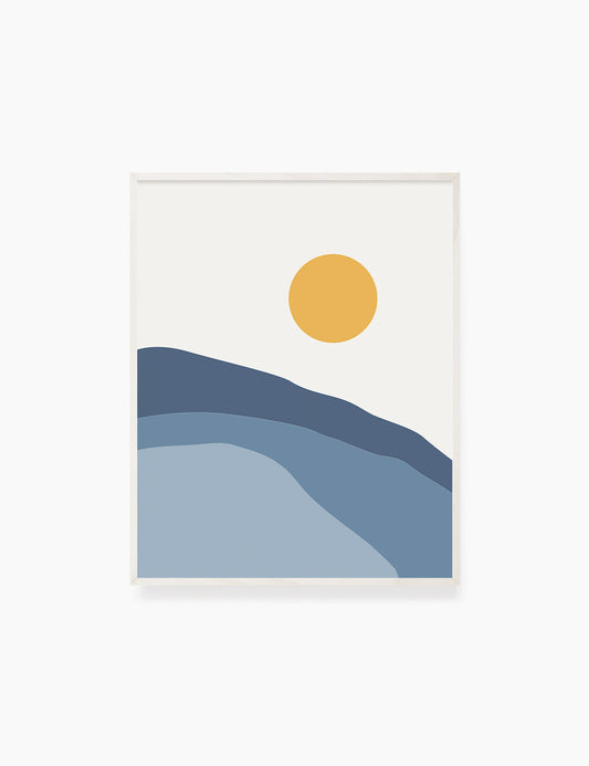 SUN OVER THE BLUE OCEAN WAVES. Boho Art. Minimalist. Abstract.