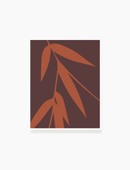 BAMBOO LEAVES. Minimalist Botanical Boho Art. Burnt Orange and Brown.
