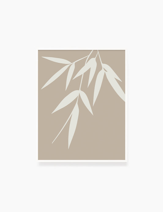 BAMBOO LEAVES. Minimalist Botanical Boho Art. Beige.