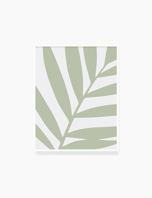 LEAF. Minimalist Botanical Boho Art. Green and Beige.