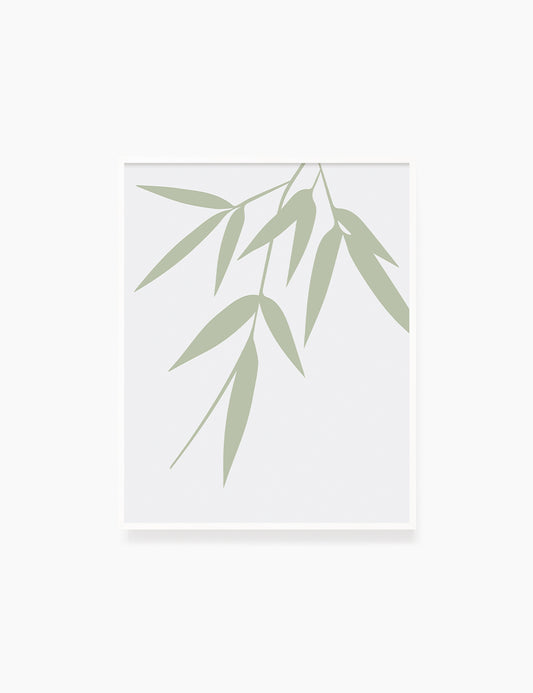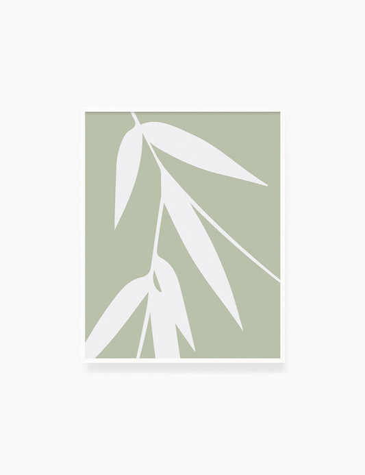 BAMBOO LEAVES. Minimalist Botanical Boho Art. Green and Beige.