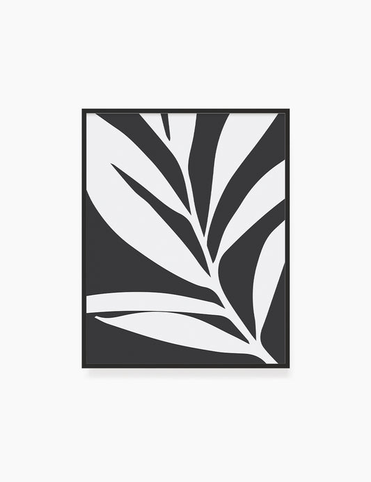 LEAF. Minimalist Botanical Boho Art. Black and White.