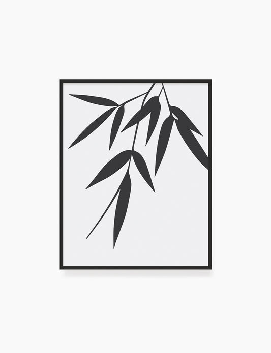 BAMBOO LEAVES. Minimalist Botanical Boho Art. Black and White.