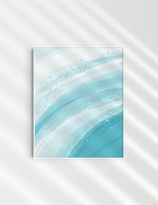 BLUE OCEAN WAVES. Abstract Watercolor Art.