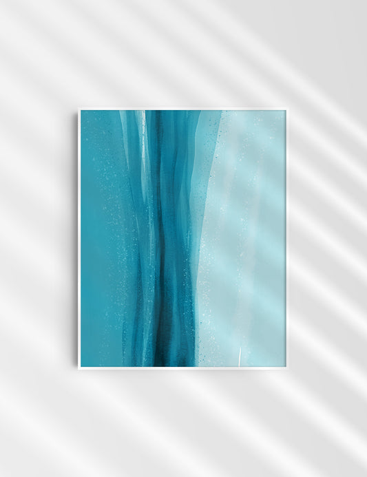 BLUE OCEAN WAVES. Boho Art. Minimalist. Abstract.