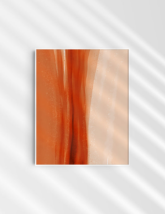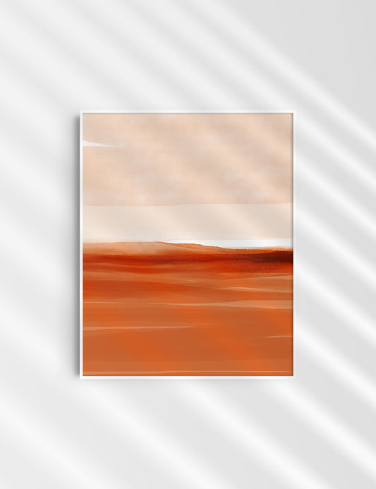 ABSTRACT WATERCOLOR LANDSCAPE. Burnt Orange. Aesthetic. Minimalist.