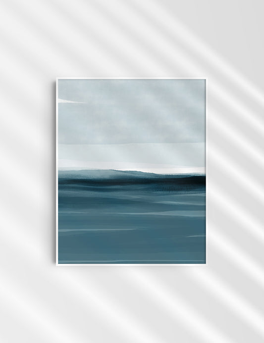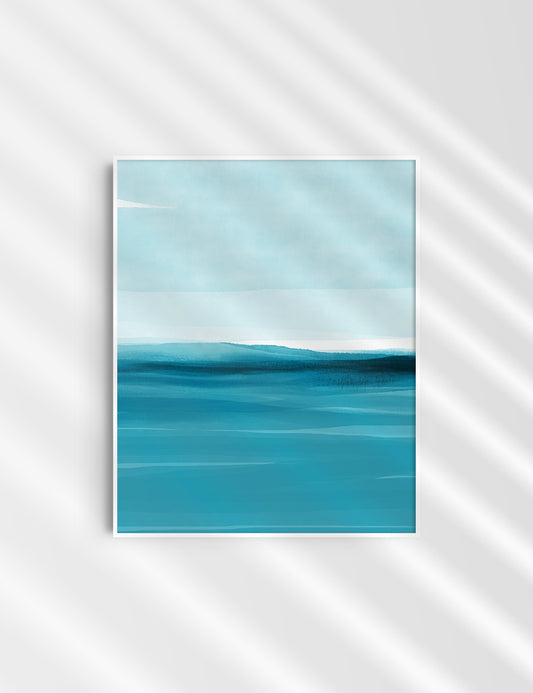 ABSTRACT WATERCOLOR LANDSCAPE. Blue. Ocean. Sea. Aesthetic. Minimalist.