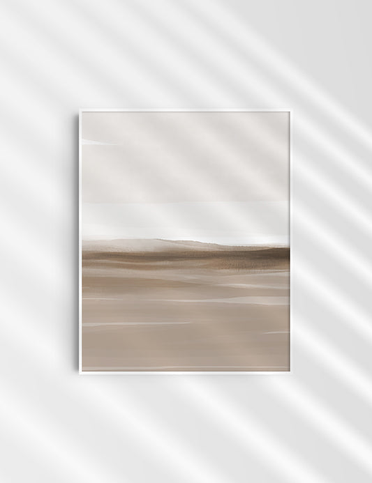 ABSTRACT WATERCOLOR LANDSCAPE. Brown. Beige. Aesthetic. Minimalist.