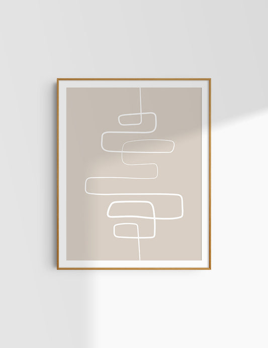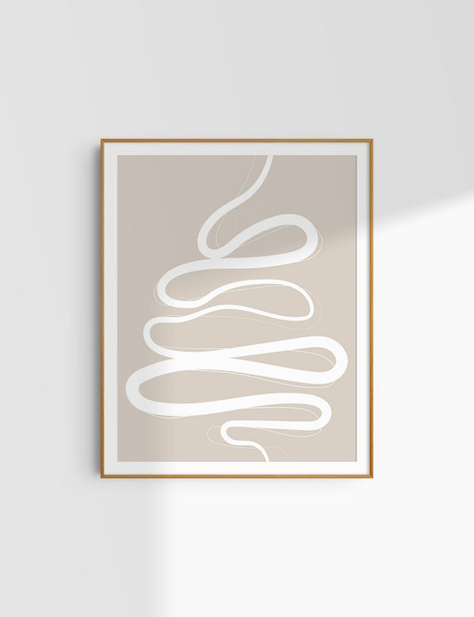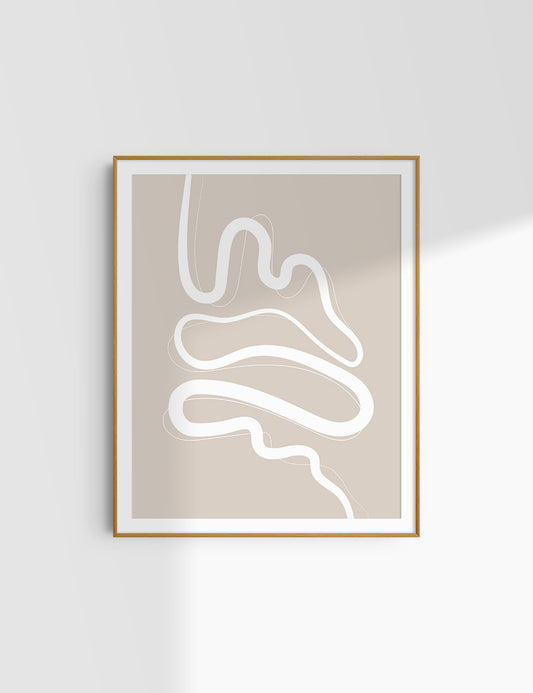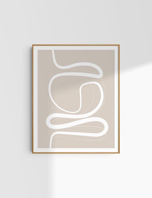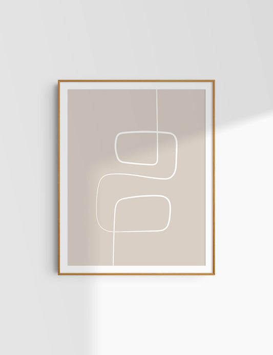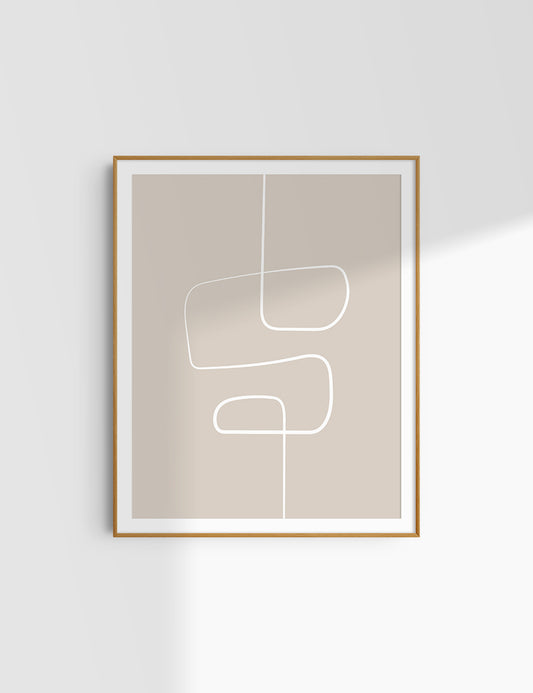 MINIMALIST, ABSTRACT LINE ART. Beige and White. Printable Wall Art Illustration.