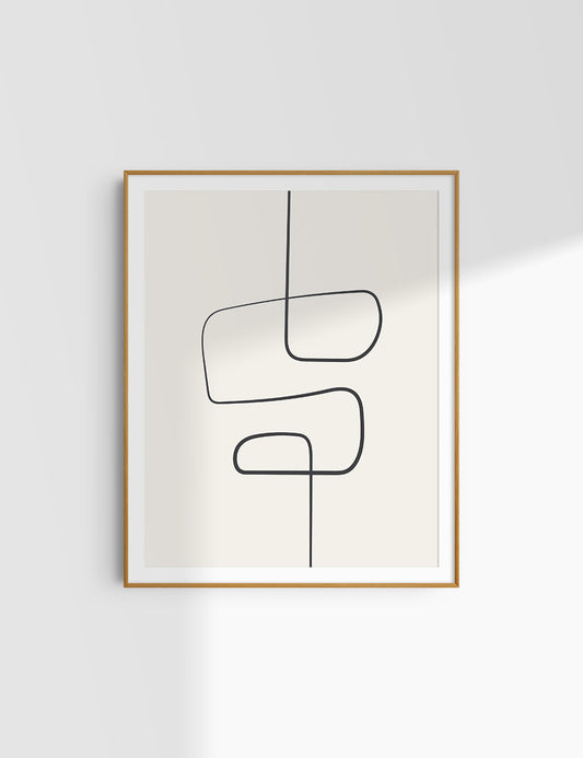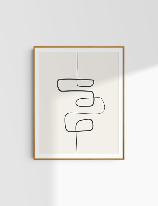 MINIMALIST, ABSTRACT LINE ART. Beige and Black. Printable Wall Art Illustration.