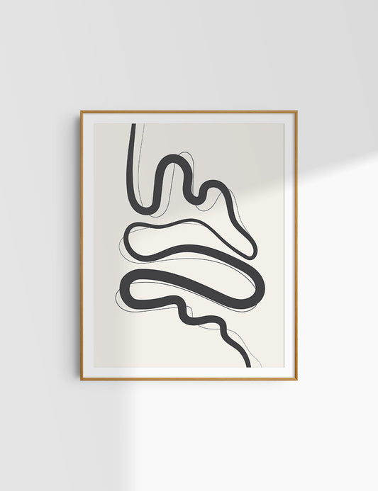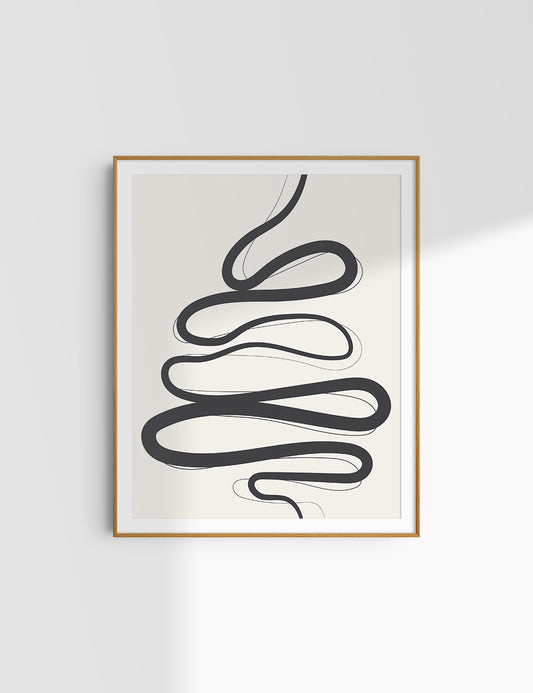 ABSTRACT MINIMAL WAVY LINES. Boho Art Print.