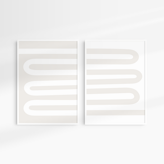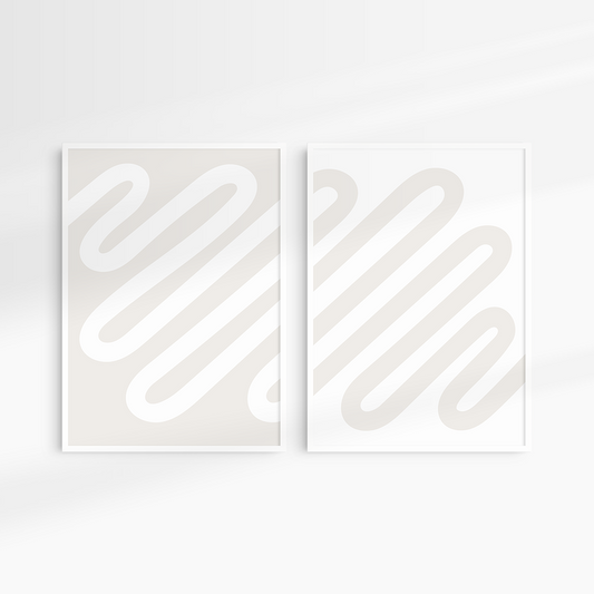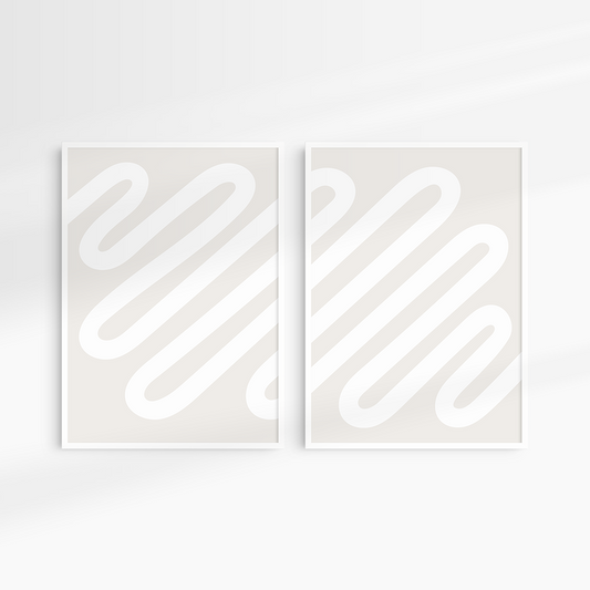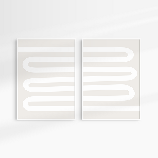 Neutral Abstract. Set of 2. Beige and White Wall Art.
