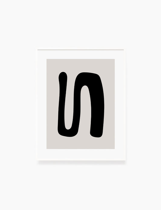 Black and Beige Minimalist Art. Abstract Curvy Shape.