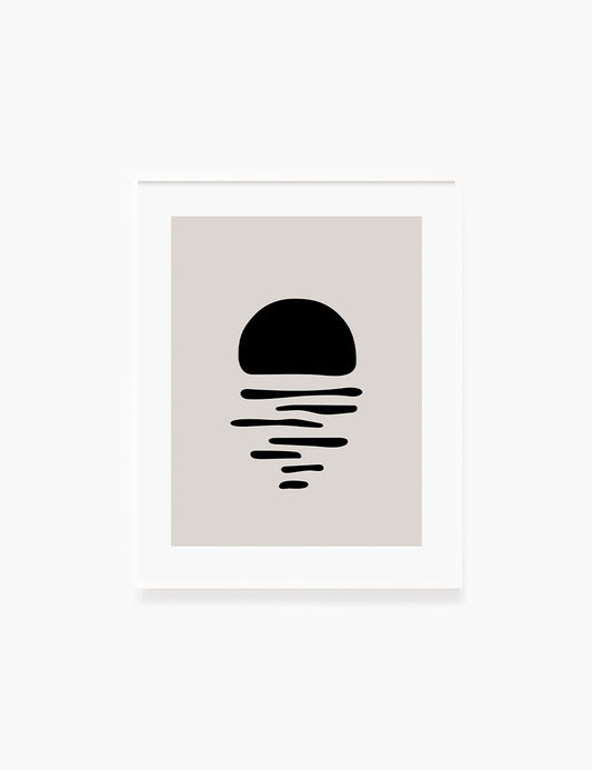 Black and Beige Minimalist Art. Abstract Sun/Moon Reflection on the Water.