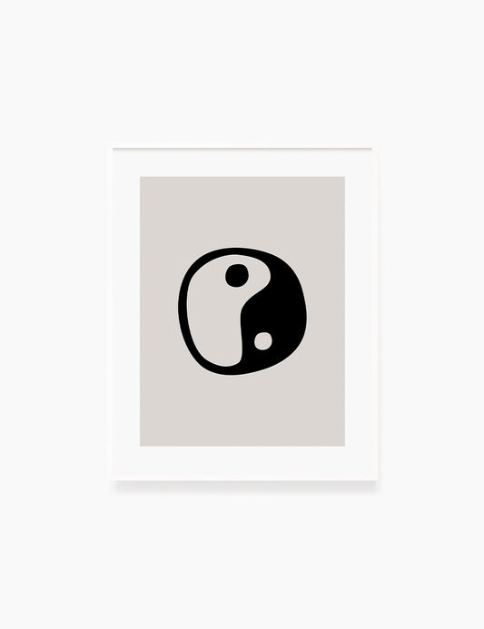 YIN YANG Symbol. Black and Beige Minimalist Abstract Art.