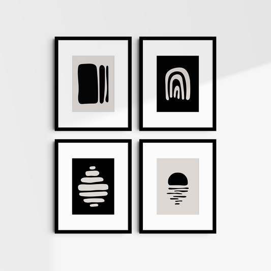 Black and Beige Minimalist Art. Abstract Shapes. Set of 4 Digital Prints.