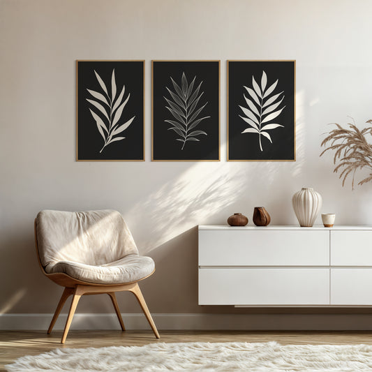 Botanical Wall Art Illustration. Neutral Leaf Art Set of 3 Prints.