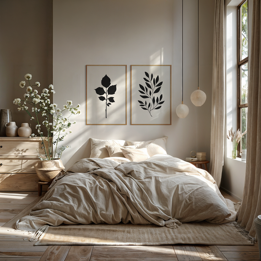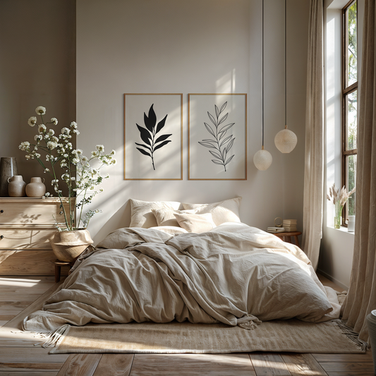 Botanical Wall Art Illustration. Neutral Leaf Art Set of 2 Prints.