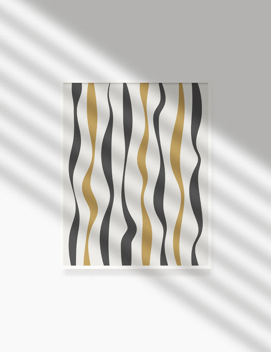 WAVY Black and Beige. Printable Wall Art Illustration.