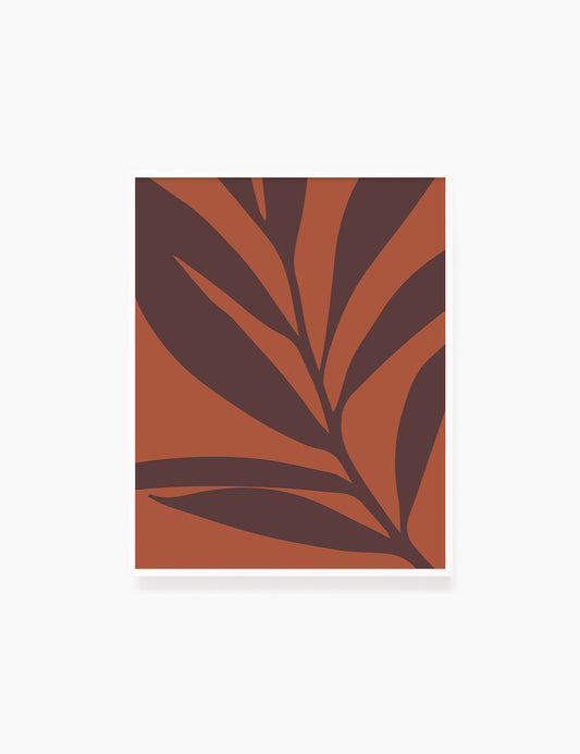 LEAF. Minimalist Botanical Boho Art. Burnt Orange and Brown.