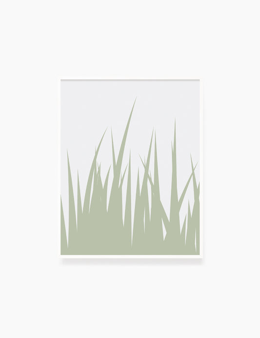 GRASS. Minimalist Botanical Boho Art. Green and Beige.