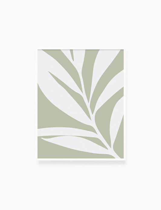 LEAF. Minimalist Botanical Boho Art. Green and Beige.
