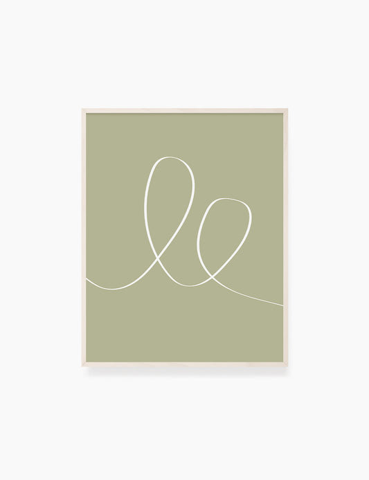 MINIMAL LINE ART. Abstract Heart Shape. Green. Beige. Black.