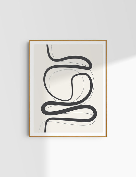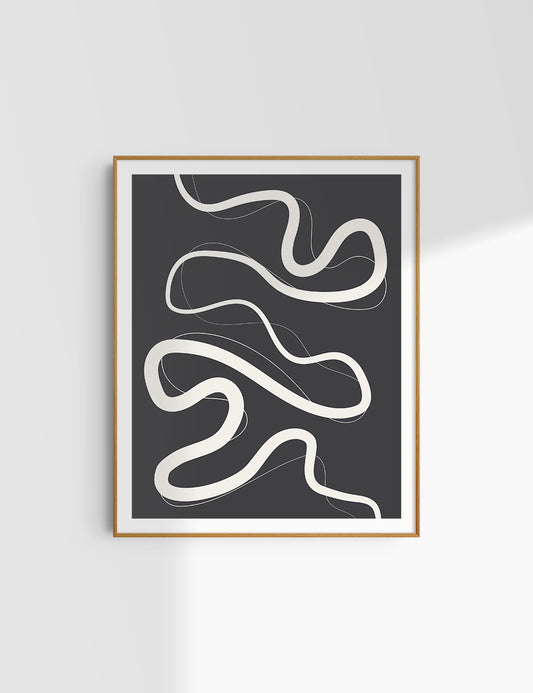 ABSTRACT MINIMAL WAVY LINES. Boho Art Print.