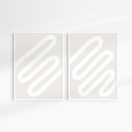 Neutral Abstract. Set of 2. Beige and White Wall Art.
