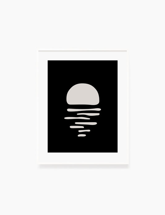 Black and Beige Minimalist Art. Abstract Sun/Moon Reflection on the Water.