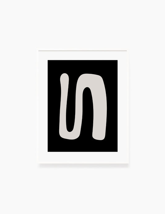 Black and Beige Minimalist Art. Abstract Curvy Shape.