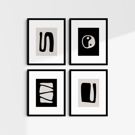 Black and Beige Minimalist Art. Abstract Shapes. Set of 4 Digital Prints.