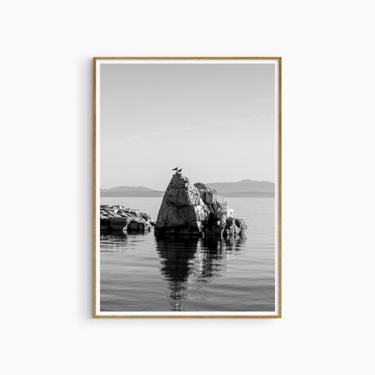 Black and White Seagull Photography Print, Minimalist Coastal Wall Art, Printable Sea Rock Photography