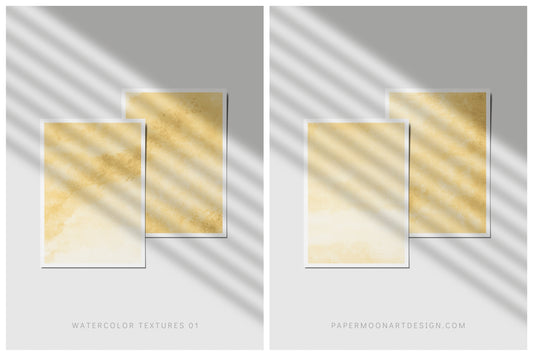 12 Watercolor Texture Backgrounds 01 Yellow Gold, Digital Scrapbook Paper