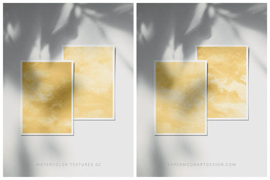 12 Watercolor Texture Backgrounds 02 Yellow Gold, Digital Scrapbook Paper