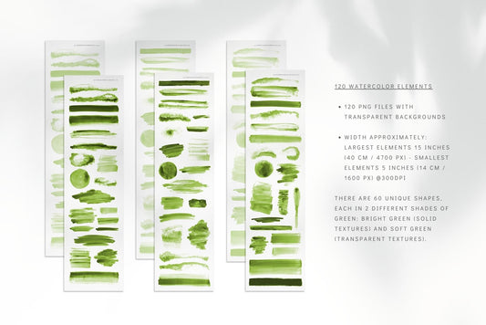 120 Watercolor Texture Elements 01 Green, Watercolor Shapes, Splotches, Brush Strokes