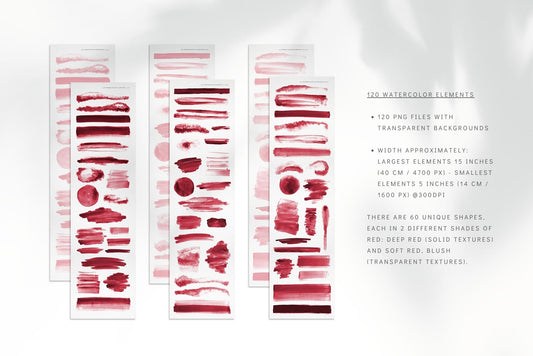 120 Watercolor Texture Elements 01 Red, Watercolor Shapes, Splotches, Brush Strokes